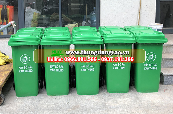 – Thùng rác nhựa 120L có nắp đậy kín, có 2 bánh xe vận chuyển rác